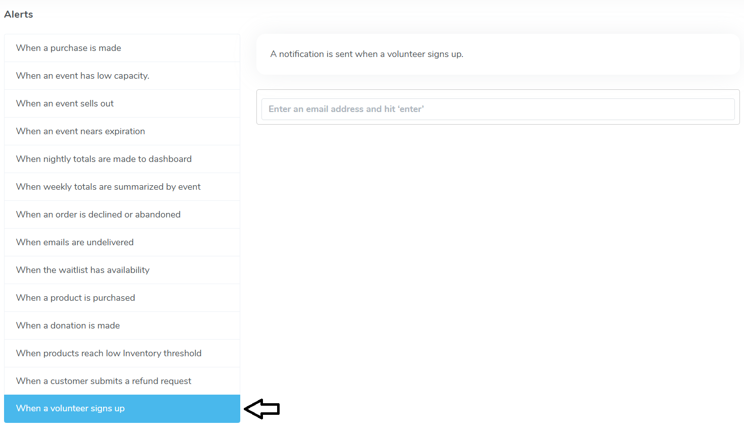 - On the admin/box office side, by enabling the volunteer option for an existing user.