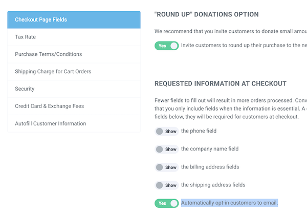- Change "Automatically opt-in customers to email" to Yes as shown below.