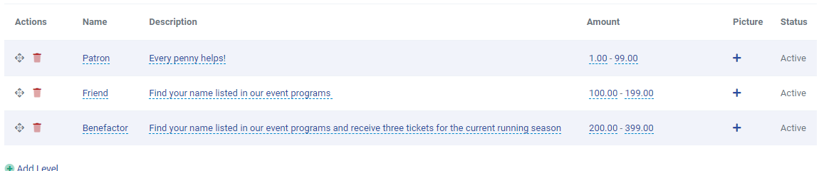Use this data to invite patrons to achieve higher levels with potentially greater awards such as publication of patron names in handbills, tickets for special performances, etc.