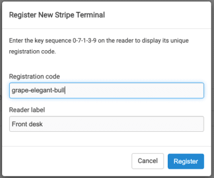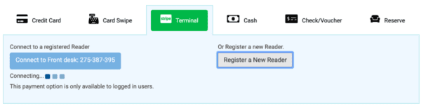 If the Terminal doesn't automatically connect, choose the option to the right to "Register a new Reader".