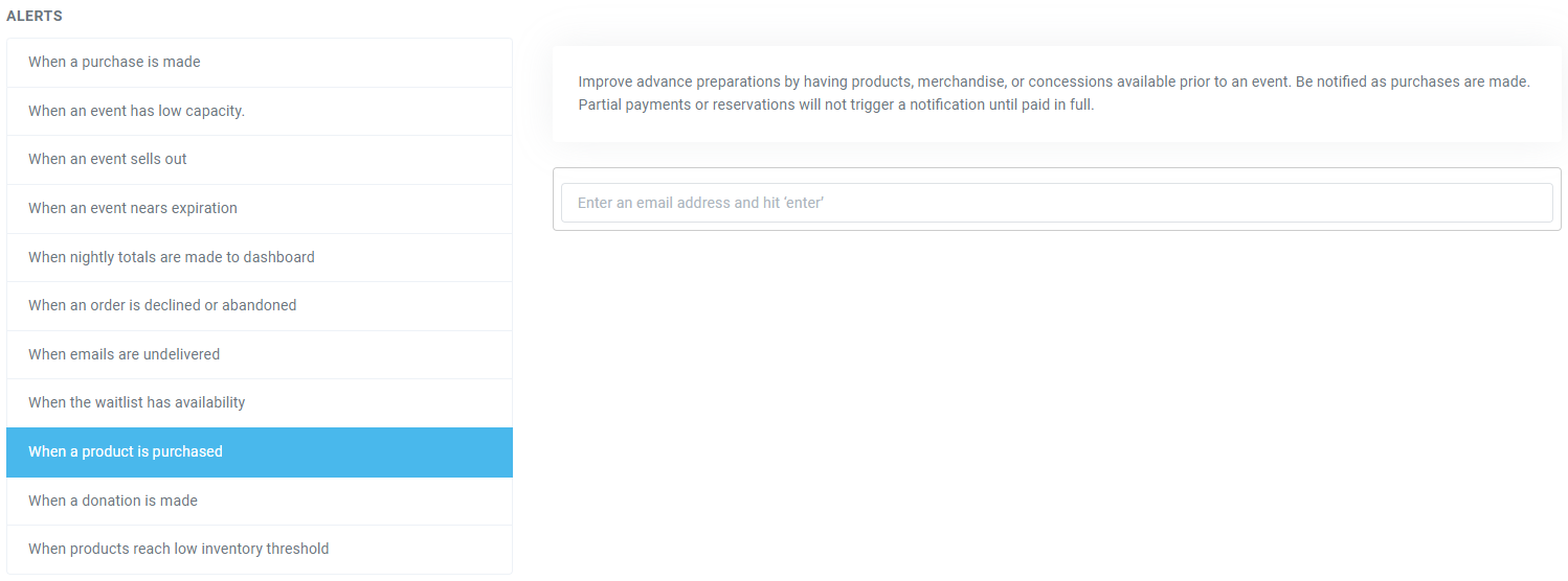Sign up for email notifications that alert you when a product is purchased. This can help aid in the tracking of quantities of different products. Follow the steps below to sign up for this notification: