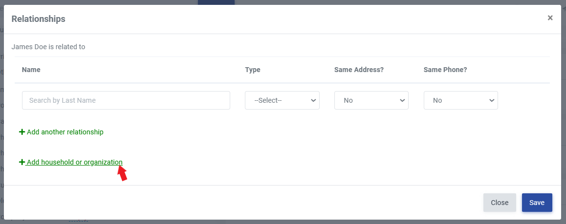 To create a household, locate the patron record in your Patron Database and manage the relationships found under the Details section of the record. You could create a household named, "The Smith Family".