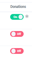- Under the Donations column, click the toggle from Off to On to enable donations on your event.