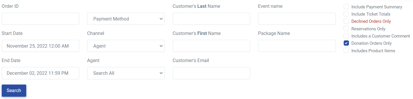2. Check "Donation Orders Only" (and uncheck other boxes)