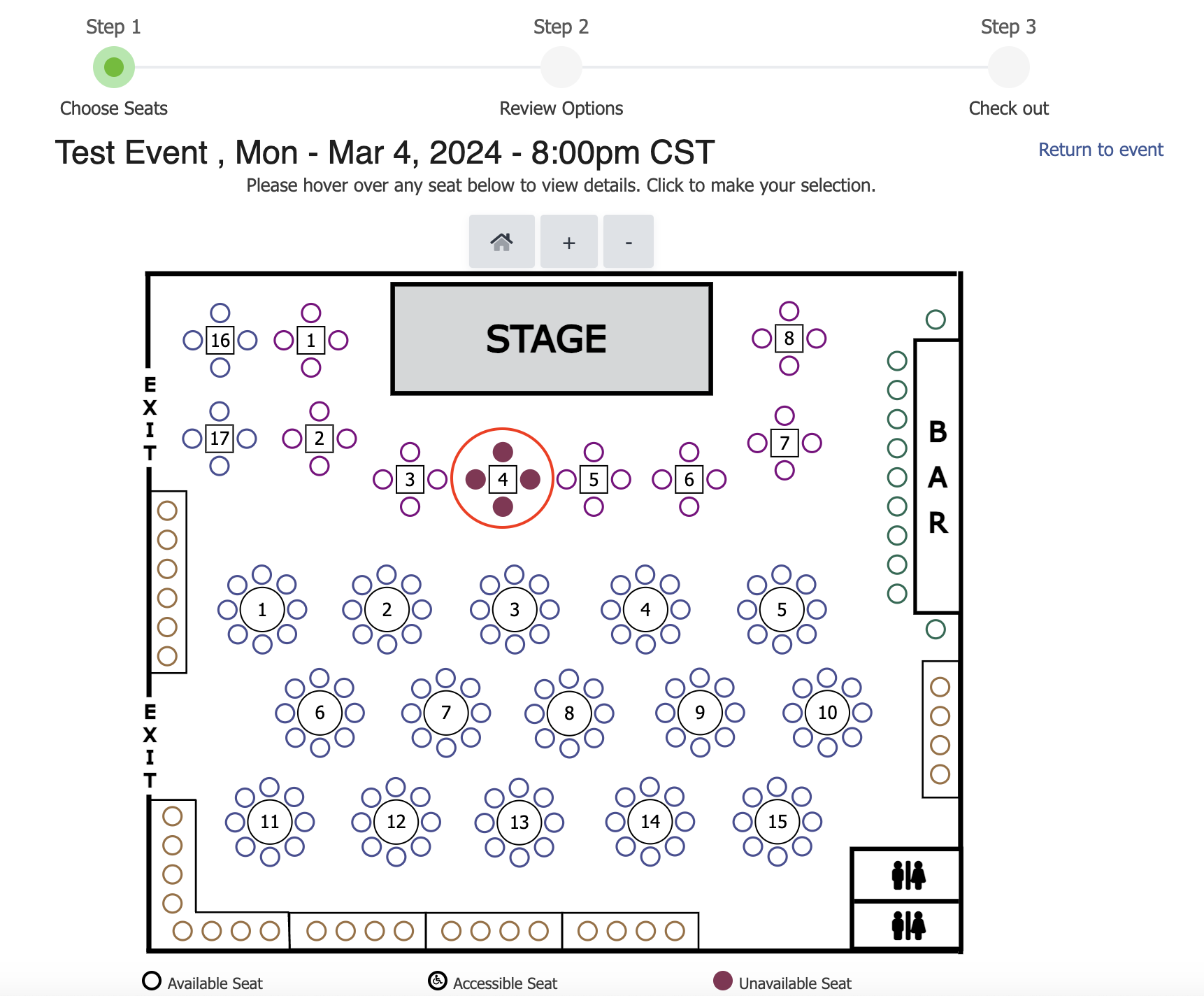 Once a table has been purchased by a patron, it will show up as unavailable for purchase:
