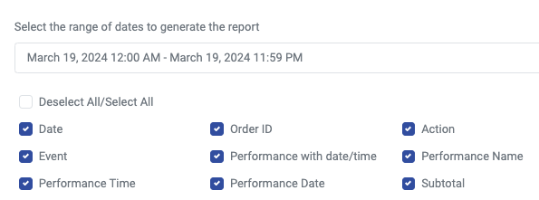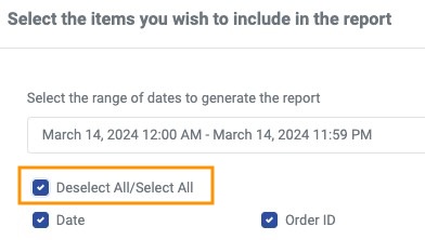 Select Deselct.jpg 21.8 KB You can select/deselect all options to make report generation even easier. We also save your selections for the next time you run the report!
