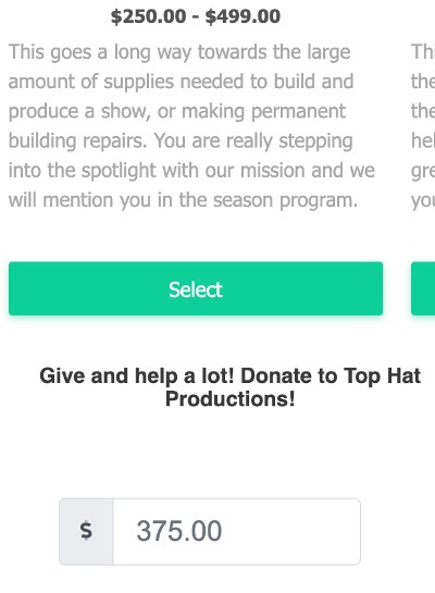 selected-donation-level.jpg 33.33 KB This suggested default donation amount encourages your patrons to give a higher amount than the minimum suggested donation for that donor level!