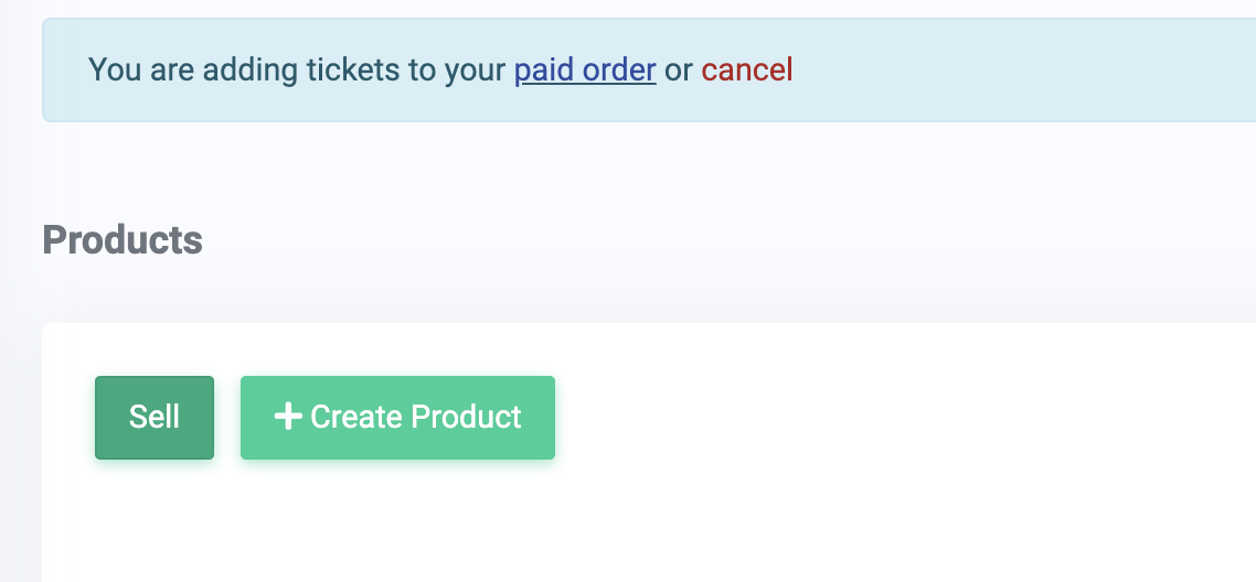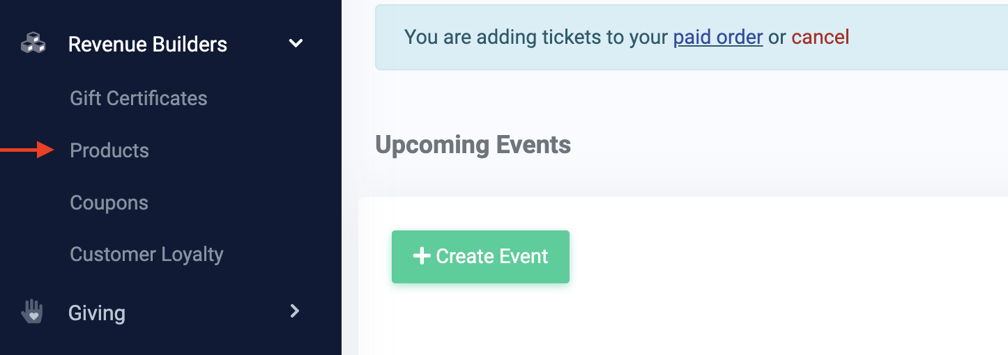 *Please note that there is currently only the option to add products or tickets to orders with only these two items. Orders that include donations, gift cards, coupons, memberships, packages, etc. are not eligible to use this function. Please also note that at this time you cannot accept donations on an order with only products.