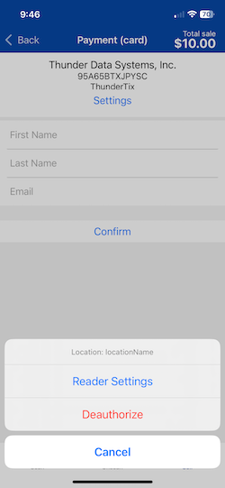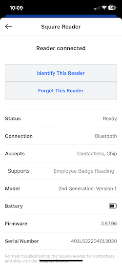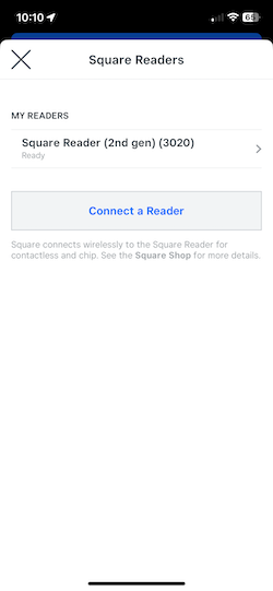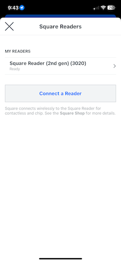 You will see a list of all Square Readers paired with the ThunderTix iOS app. Click on the "X" button on the top left to close the list of connected Readers.