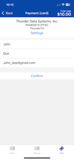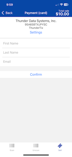 Like the web version of ThunderTix, when processing an order on behalf of a customer, the name and email fields are optional to keep the line moving. However, the more information you can collect from the customer, the better as all data is entered into your CRM for future marketing purposes.
