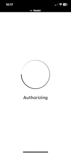 Now you will see the Authorization screen. Please wait while it is communicating with ThunderTix and Square to authorize credit card transactions.