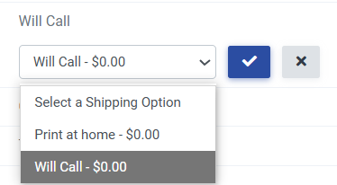 Select the preferred shipping method and then click the blue check mark to save your changes. This will also update the shipping method on the Guest List.