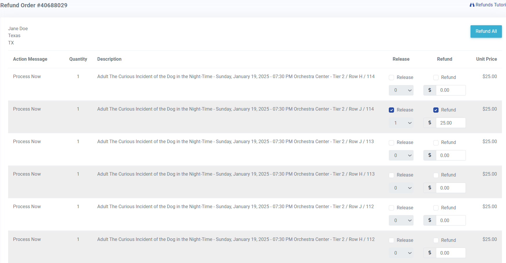 - A message will pop up in the top right corner prompting you to click 'Refund Now' to refund the selected seats. Click Refund Now to refund the seats.