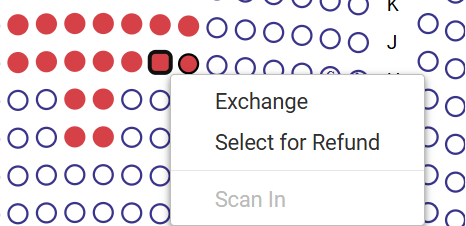- You will then right click on the seat you would like to refund and click 'Select for Refund'. You'll notice the seats highlighted with a black ring around each selected seat for the refund.