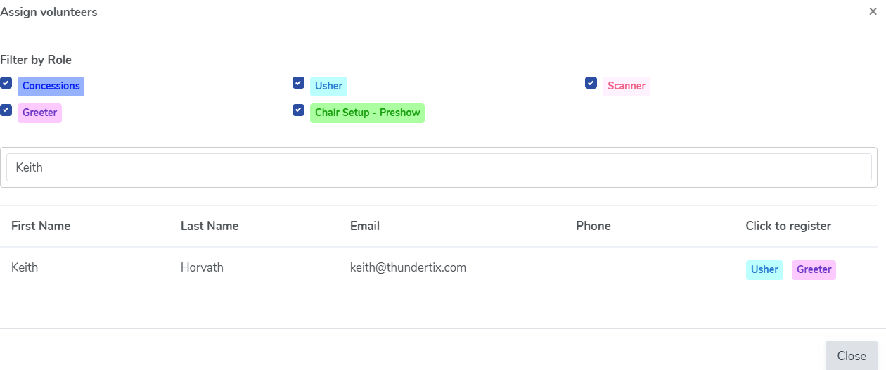 - Finally, click the role you'd like to assign the volunteer to. We will generate a list of all eligible roles for your volunteer.