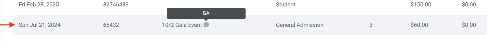 Example 2: Order 65432: 3 General Admission @ $20 each for $60