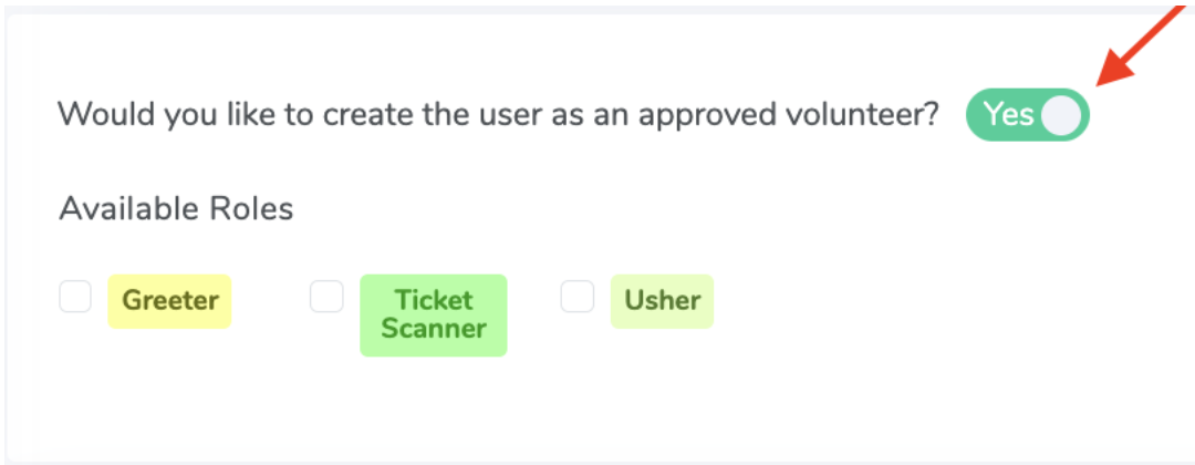- On the admin/box office side, by enabling the volunteer option for an existing user.
