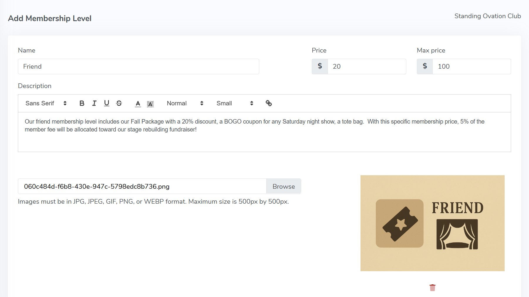 4. Add a description for your membership. See example below. 5. Add a photo for your membership.