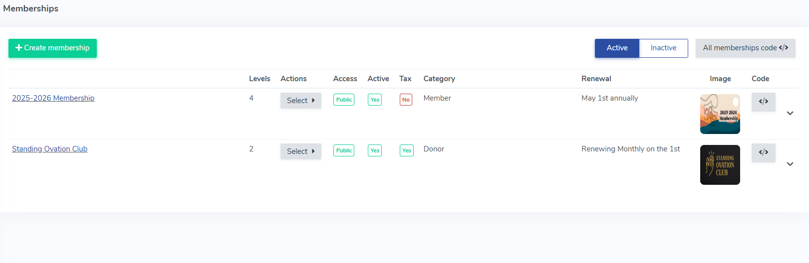 To make edits to an existing Membership, you will go to the memberships tab on the left of your screen and click "Membership Manager". That will bring you to this screen: