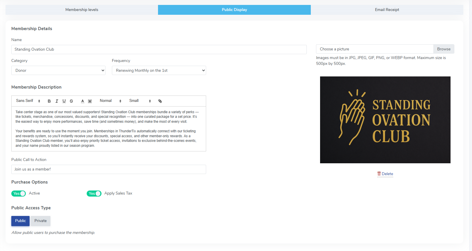 The final tab will bring you to the "Email Receipt" section. This will allow you to edit what is in the membership confirmation email.