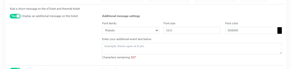 Then, scroll down the screen until you find "Display an additional message on the ticket". You can write any message you would like to display here.