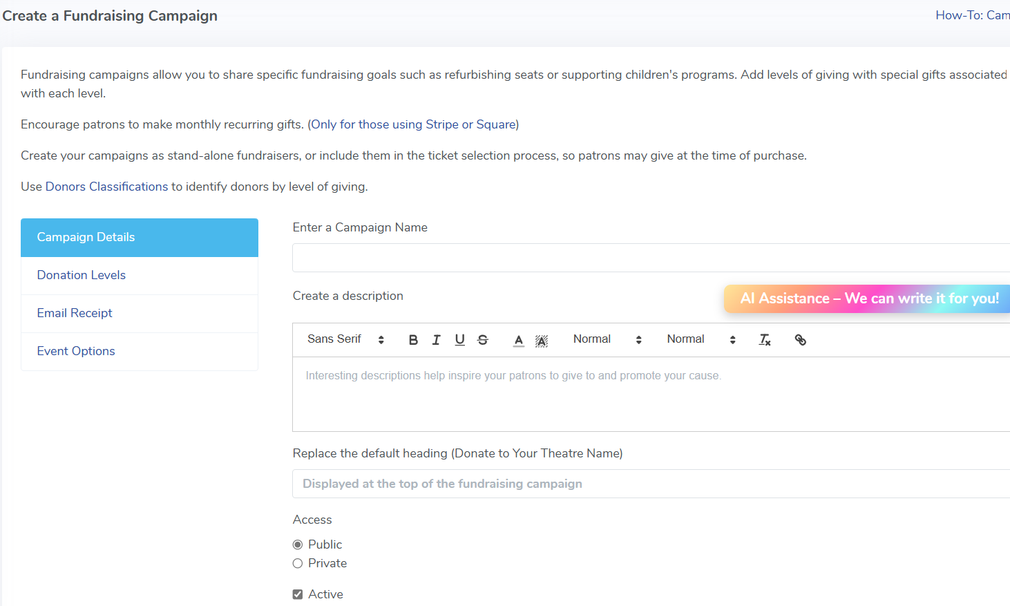 Can ThunderTix generate fundraising campaign descriptions for me? - Wed - Oct 15, 2025 - 4:27pm