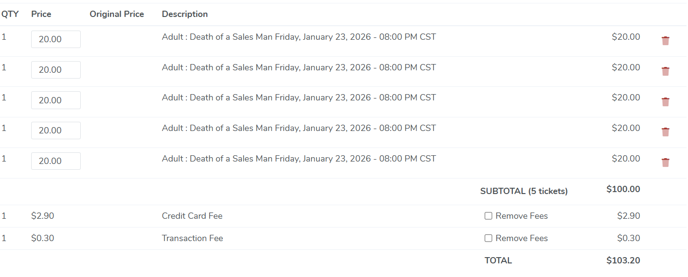 - This will make every ticket it's own line item. Simply click the trashcan icon to remove the tickets from the reservation