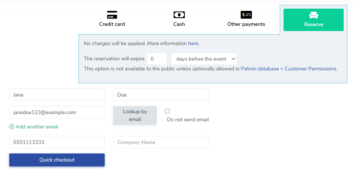 - Once you've removed the desired tickets, you can either process the reservation by clicking a payment method and Confirm Order or create a new reservation by clicking the 'Reserve' button.