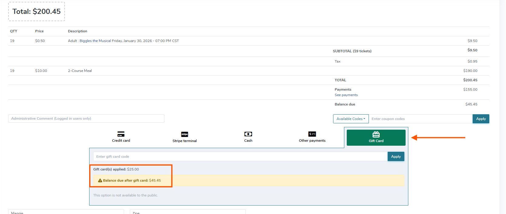 Gift Cards Can Now Be Applied to Orders with a Remaining BalanceWe’ve improved how gift cards work when completing orders with an outstanding balance.You can now apply a gift card to an order even if a partial payment has already been processed. This allows you to: