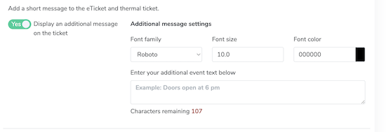 - Scroll to “Add a short message to the eTicket and thermal ticket”