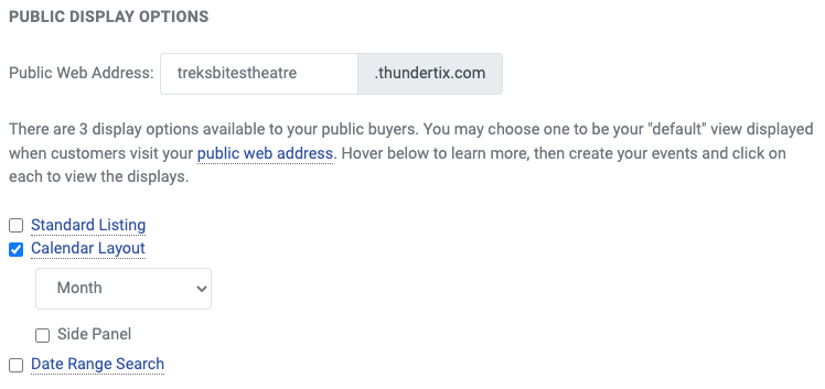 - Under PUBLIC DISPLAY OPTIONS select Calendar Layout