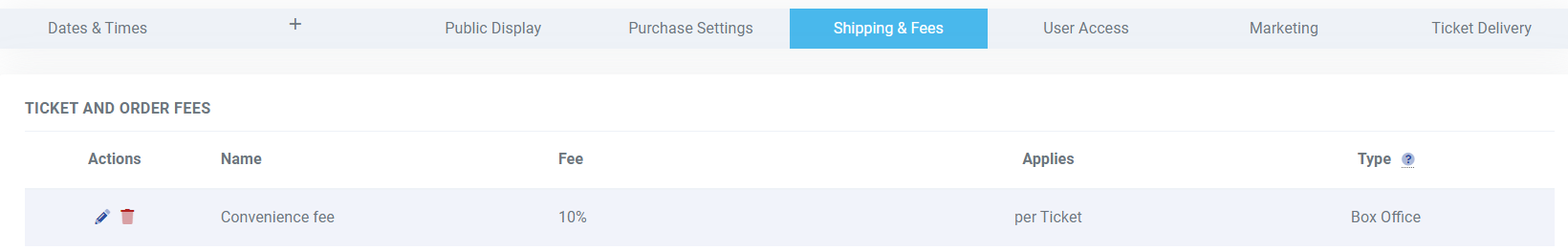 - Use the Dropdown menu to select whether you want the fee assessed per Ticket or per Order